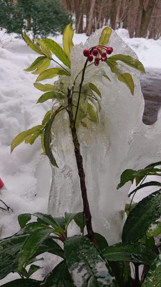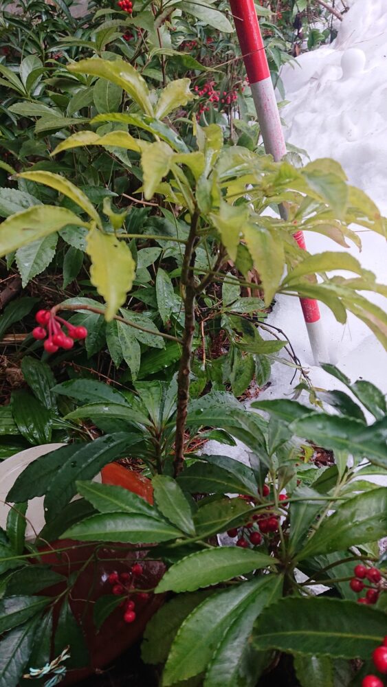 万両は葉の色がうすくなりましたが、元気そうです!