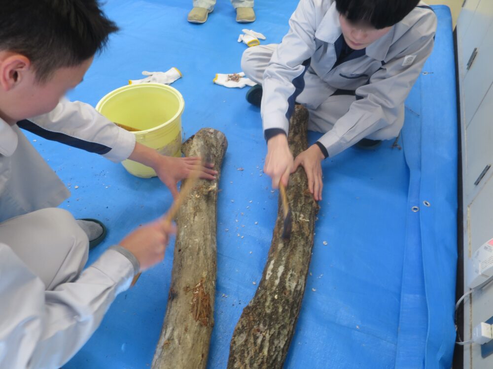 矢上高校さんへ、しいたけ植菌体験に!